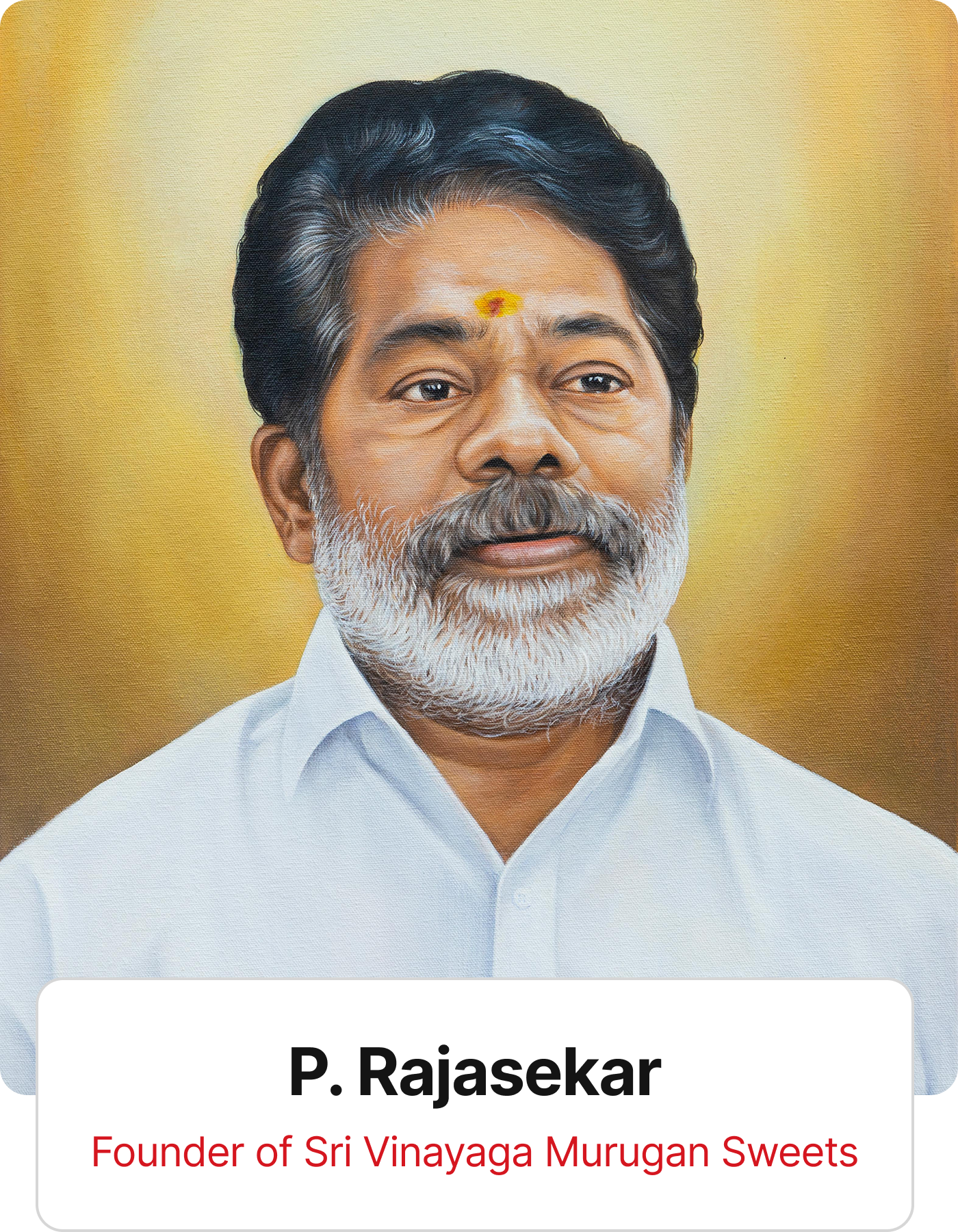 P. Rajasekar's Vision "To deliver delicious, hygienic, and top-tier sweet snacks to everyone. We believe that every occasion deserves a touch of sweetness, transforming moments into cherished memories. Our commitment to quality ensures that each treat is a testament to our founder's dream, ensuring not just taste, but an experience that lingers."